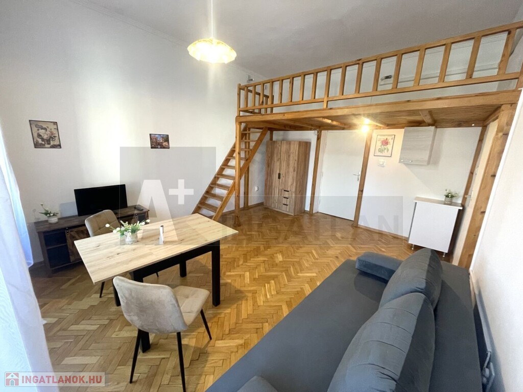 Szeged Alsóvároson , a Mátyás király téren , első emeleti , 38 m2-es , galériás , frissen felújított , modernizált , garzon lakás kiadó .