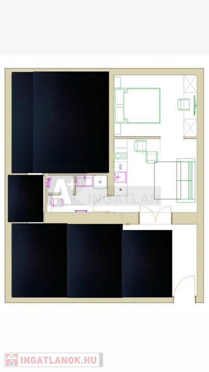 A lakás kialakítása : 1 nappali, 1 hálófülke ,konyha és fürdőszoba.
