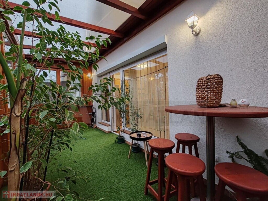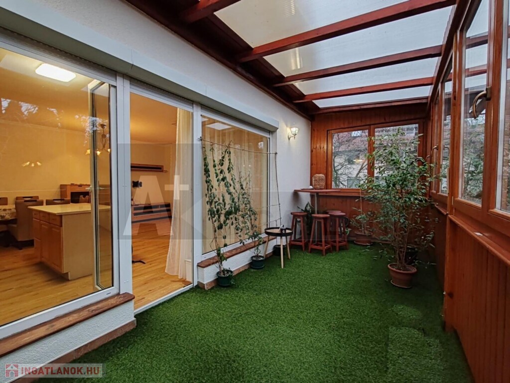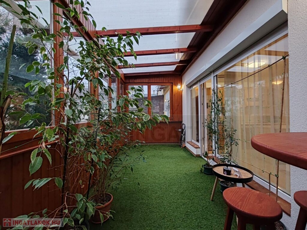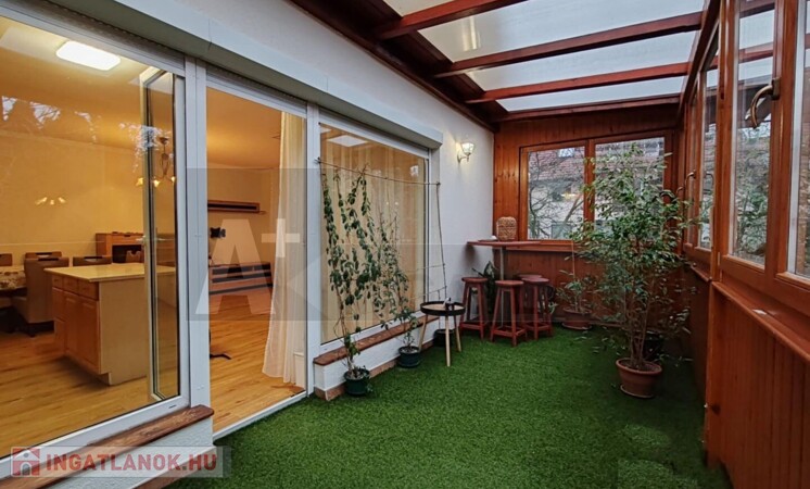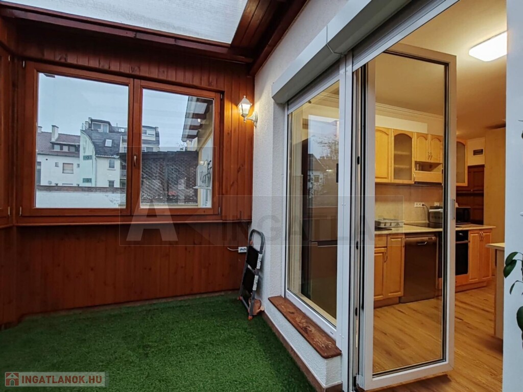 A lakás egyik igazi éke a nagyméretű terasz, amely fából készült, szigetelt nyílászárókkal rendelkezik, így egész évben jól használható.