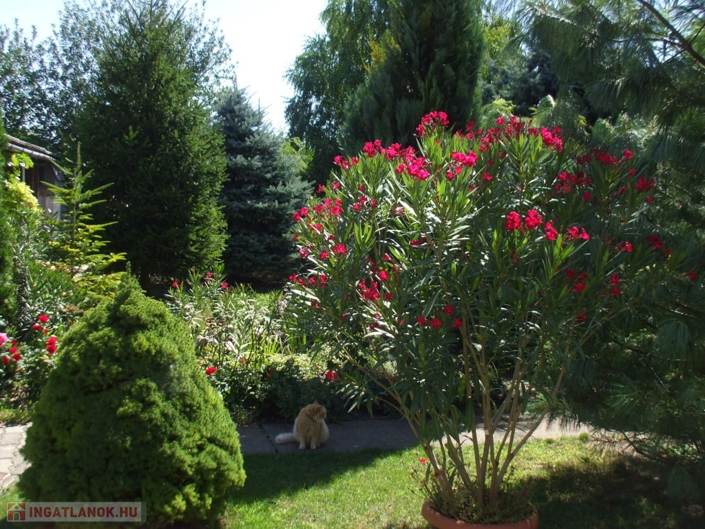 A gyönyörűen parkosított udvar automata öntözőrendszerrel és kerti grillezővel van ellátva.