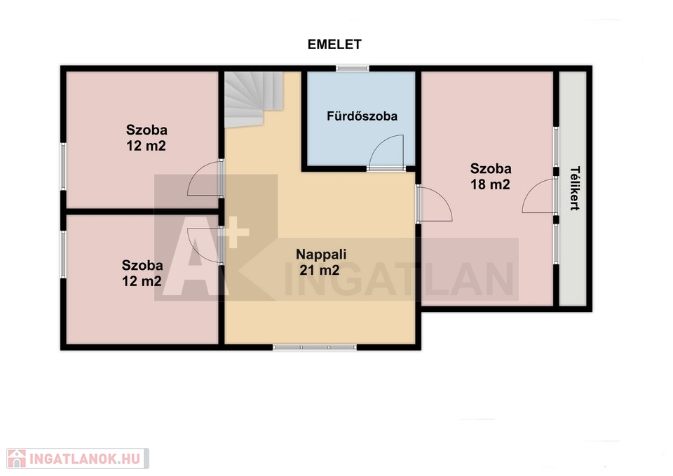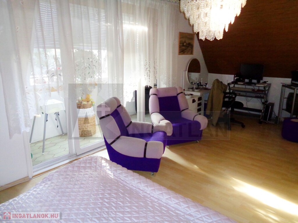 A felső szintre lépéskor szintén egy nappali tárul elénk, melyből nyílnak a praktikusan külön bejáratú hálószobák és egy fenti fürdőszoba.