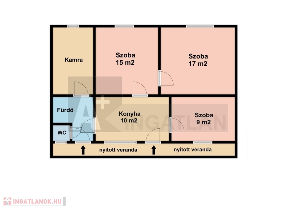 A konyha járólappal van burkolva, a 2 szoba laminált lappal, a 3. szoba pedig jelenleg hagyományos földes.
