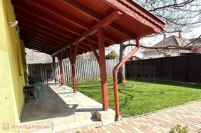 A házhoz tartozik egy 18 m²-es fedett, hidegburkolatos terasz, amely kiváló helyszín lehet pihenésre vagy családi összejövetelekre.