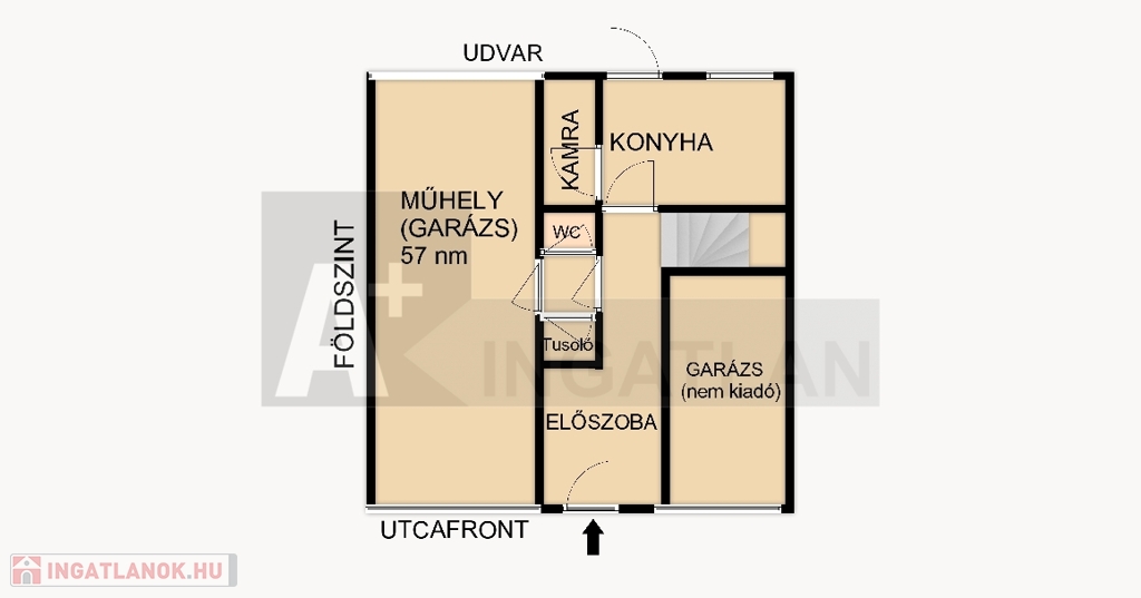 - a földszinten egy kertkapcsolatos konyha+ kamra, tusoló, toalett, és a kettő garázs található / az egyik átjárható az udvar felé /