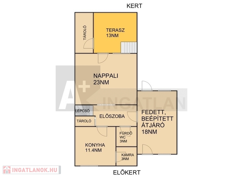 A nappaliból egy 13nm-es teraszon át is kijuthatunk a hátsó kertbe.
