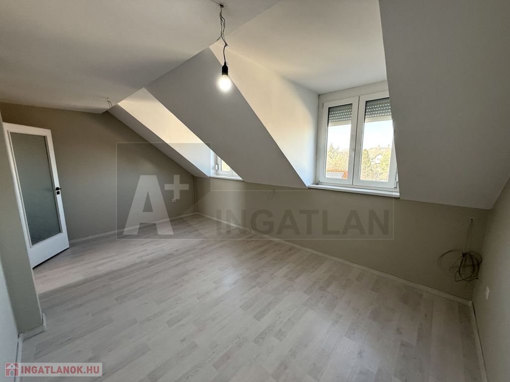felsőszint : 1 hálószoba , amely , szintén ,könnyen ketté választható ...fürdőszoba , sarok káddal és a külön nyíló mosdó és a végén a tetőtérben kialakított szoba .