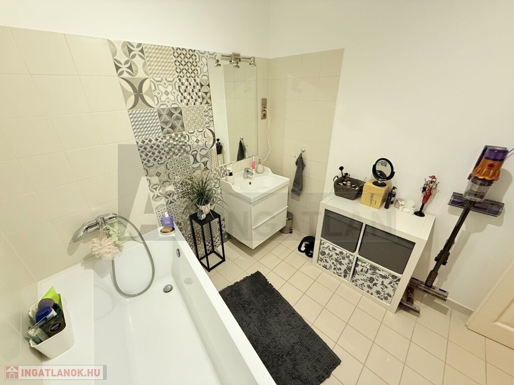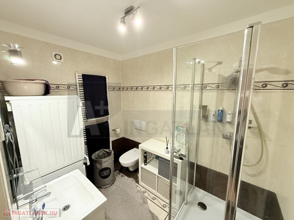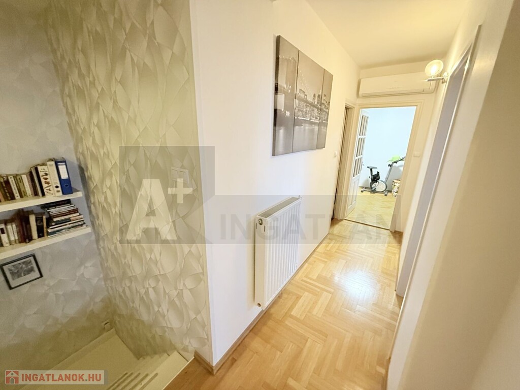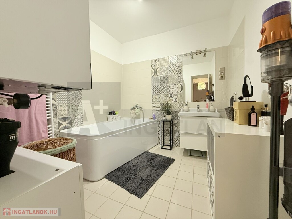 A lakás teljesen korszerű , műanyag hőszigetelt ablakok , Weissmann kondenzációs kazán , hűtő-fűtő klímák , modern burkolatok , magasfényű konyhabútor , háztartási gépekkel ...