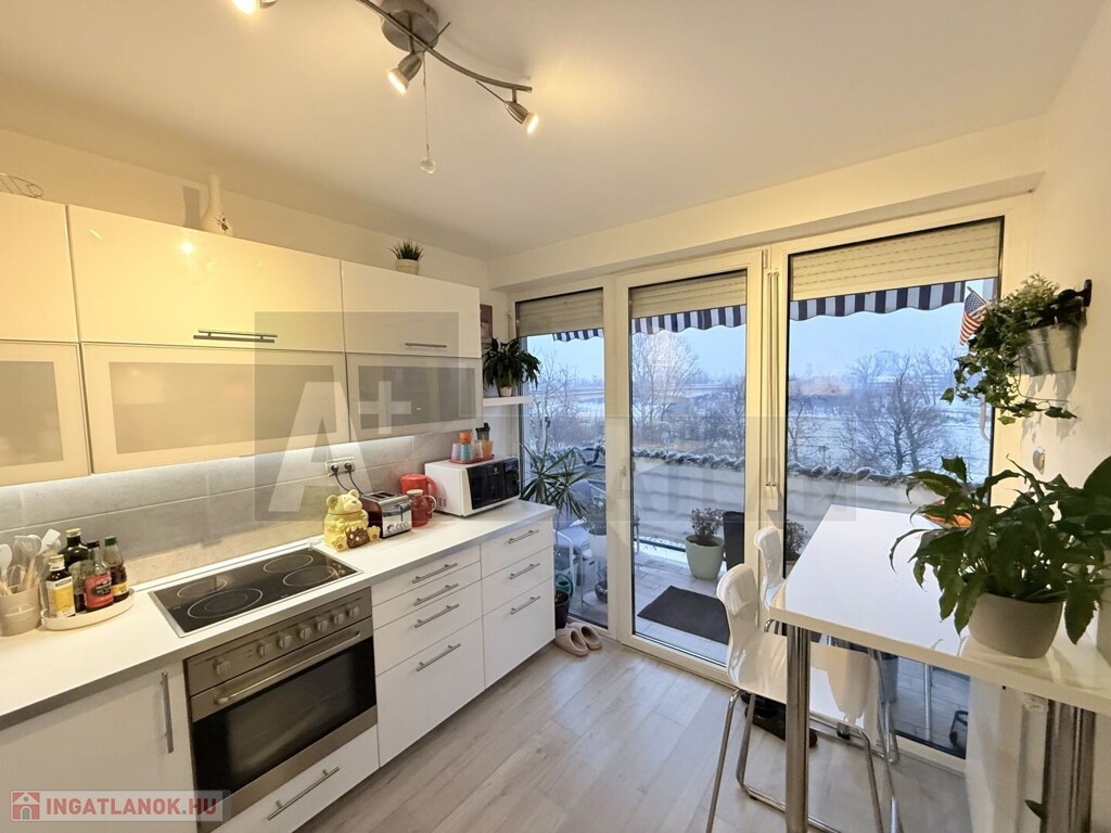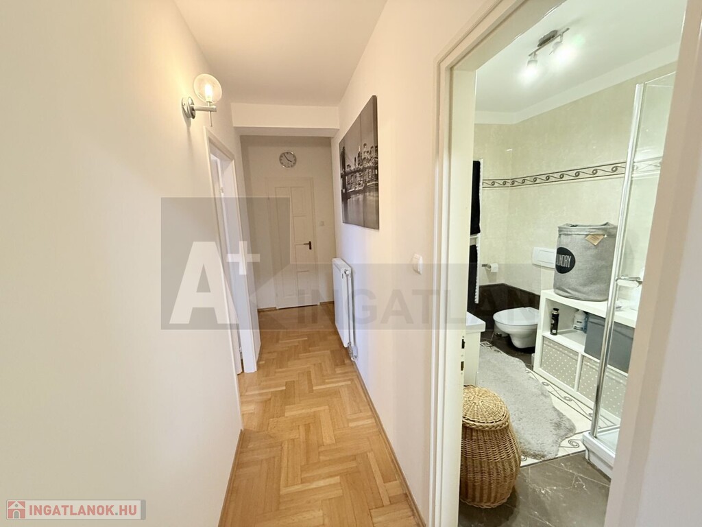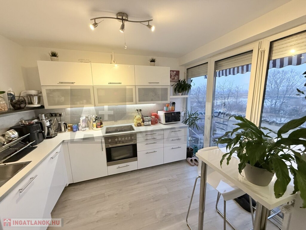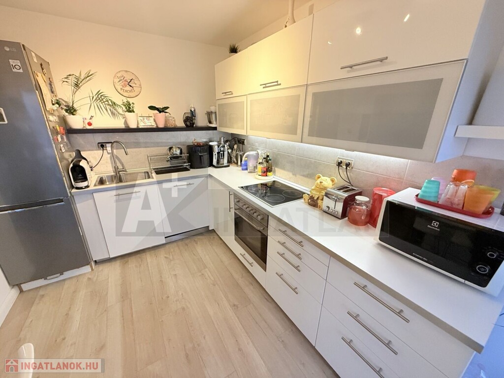 A lakás teljesen korszerű , műanyag hőszigetelt ablakok , Weissmann kondenzációs kazán , hűtő-fűtő klímák , modern burkolatok , magasfényű konyhabútor , háztartási gépekkel ...