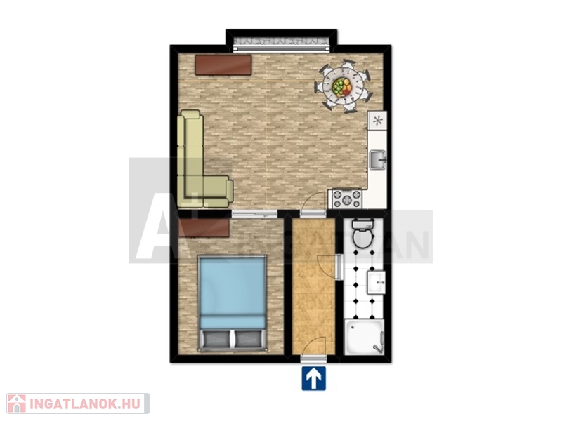 Amerikai konyhás nappali + 1 szoba Bruttó: 33,67 m2 Nettó: 26,88 m2