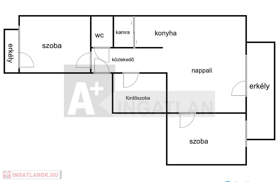 Elrendezését tekintve : a kiváló tervezésnek köszönhetően , igazán jól kialakított , konyha "rejtett " kamrával" ,tágas, napfényes , nappali erkély kapcsolattal , két egymástól távol elhelyezkedő hálószoba , az utca fronti szoba , szintén külön erkély kapcsolattal , külön nyíló , sarok kádas fürdőszoba és mosdó.
