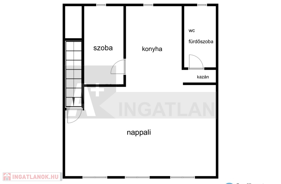 - egy fürdőszoba wc- vel és egy kazán helyiséggel