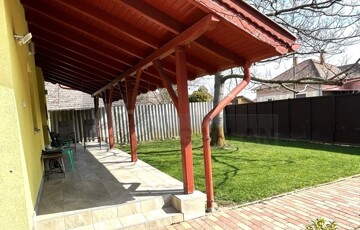 A házhoz tartozik egy 18 m²-es fedett, hidegburkolatos terasz, amely kiváló helyszín lehet pihenésre vagy családi összejövetelekre.