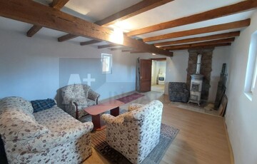 Lakóépület: 35 m²-es, előtte 30 m²-es fedett terasszal, melyben egy nagyszoba, konyha, és egy tusolós- WC-mosdós fürdőszoba van, villany vízmelegítővel. A lakóház fűtése fatüzelésű kályhával megoldott. A vízellátás hidroforral, fúrt kútról biztosított. Villanyhálózata új, nyílászárói kicserélve.