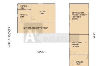 Melléképület: 65 m²-es, melyben egy nagy garázs, pince, hambár, egy 30nm-es fűthető helyiség és egy nyitott fatároló kapott helyet. AKÁR KÜLÖN LAKRÉSZ KIALAKÍTÁSA IS LEHETSÉGES!